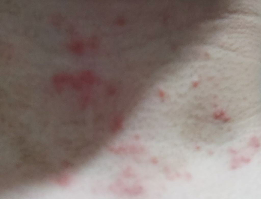 접촉성 피부염의 증상으로는주로 동그란 붉은 점, 부종 등을 동반한 습진 형태의 병변을 보입니다. 수포나 진물을 동반하기도 하며 일부에서는 여드름성 병변, 두드러기성 병변, 다형 홍반, 색소침착, 육아종성 병변 등도 발생할 수 있습니다.