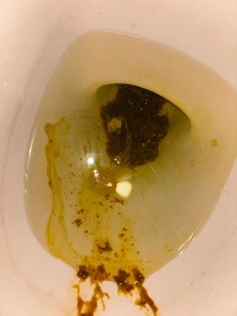 아래 사진 보시면 짜장면집에서 양파 찍어먹는 그 짜장색과 같은 완전히 검정색 변을 보실 수 있을겁니다.