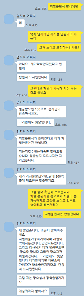 - 저한테 얘기한 합의 방법으로 얘기하고 안지킨적도 몇번 있다고 들었습니다.