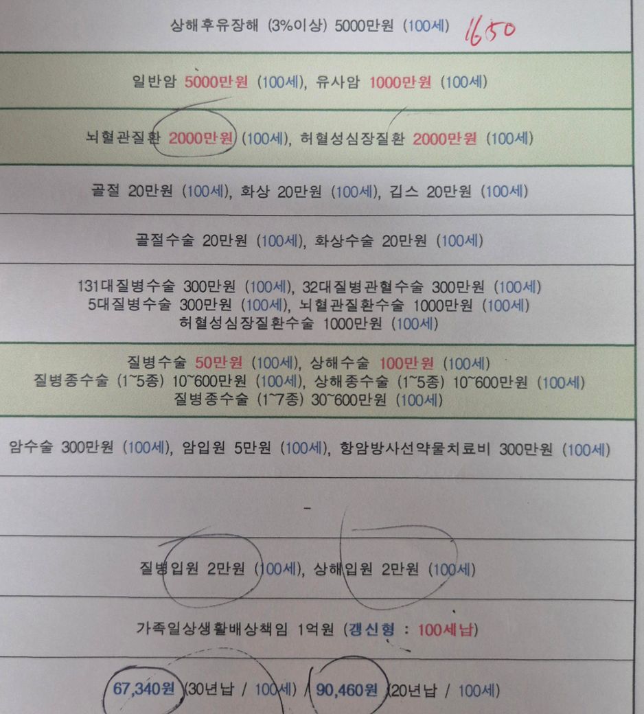 결론은 수술비, 뇌 등은 다 좋은데 입원비가 빠진 것은 부족한 상품입니다.