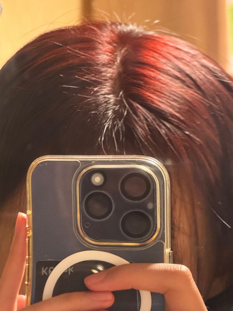 자라난 모발만 쿨 레드로 염색이 되고 …