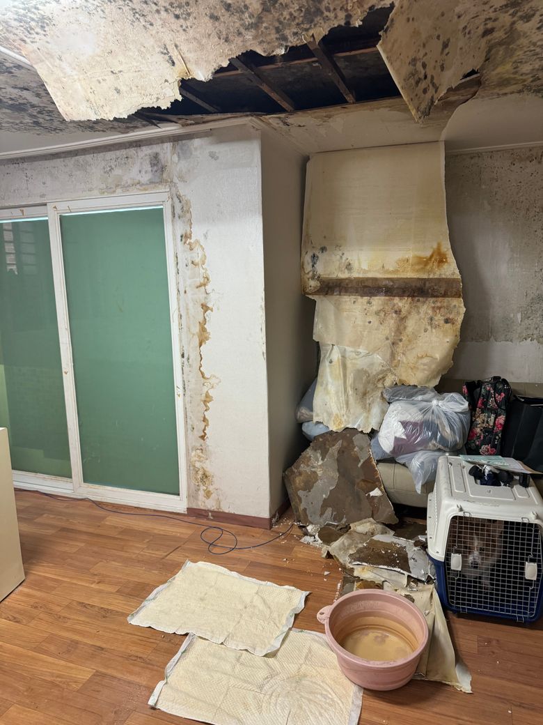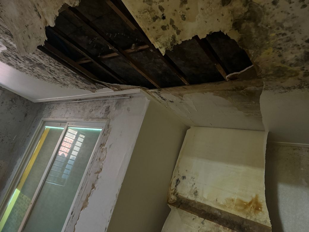 집누수로인해 곰팡이가 많이 피었고 천장에서 물이떨어져서