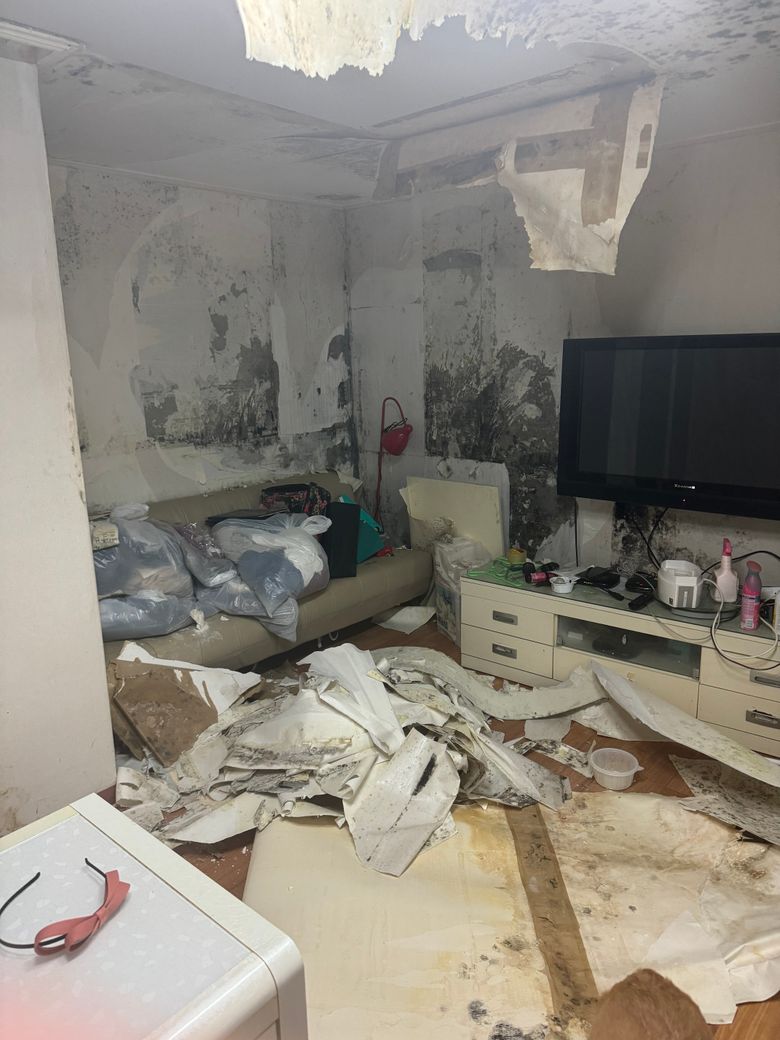 집 절반이상은 사용을 못하는상태이고 빨래도 못하는 상황입니다