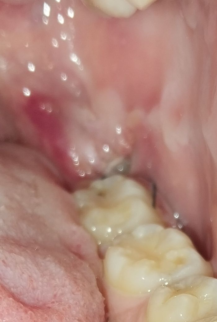 찾아보니 발치부위에 이렇게 회색이나 흰색이 보이면 안된다고 되어있는데, 비추어보니 회색이 좀 보이는것 같습니다.