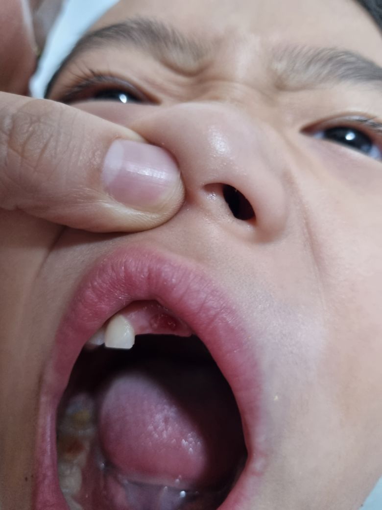 사진보면 하얀색이 약간보이는데 앞니 뿌리가 남아있는건 아닌지 걱정이 되네요 주말에나 치과를 갈수 있을것 같아서 질문 남깁니다