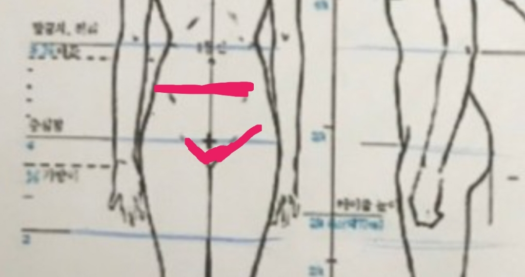 처음엔 배꼽아랫쪽이 아프다가 지금을 그림과 같이