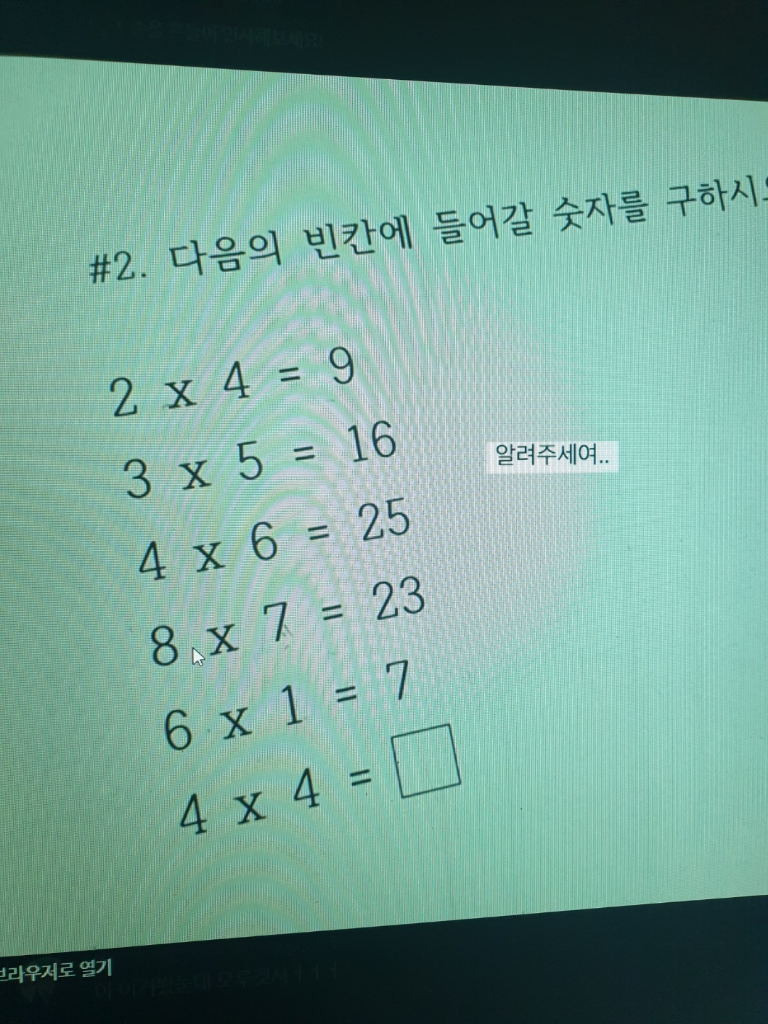 저는 답이 16이라고 생각하는데 정답 알고 계시는분 있으실까요? 이유는 9+16 =25 / 23 - 7 = 16 이라고 봅니다. 답 공유 좀요