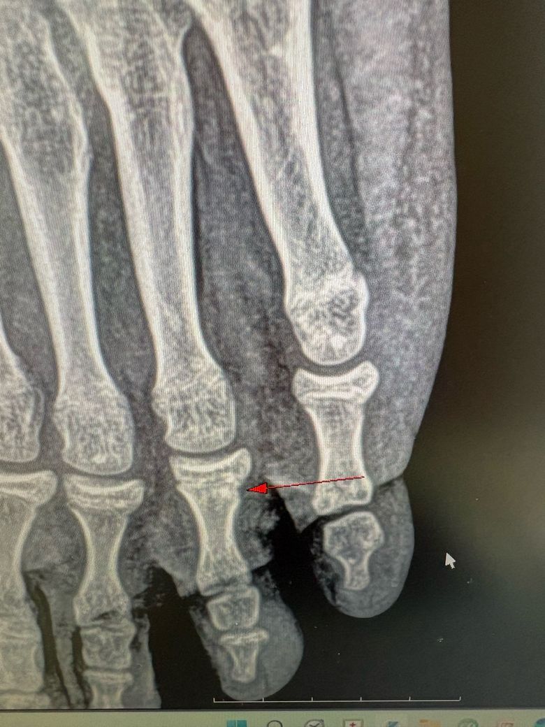 사진이 파여 보인다고 해서 "골절이 아닌 건 아닙니다" 발가락은 "미세.금발골절"이 X-ray에서 그렇게 보일 수 있어요.