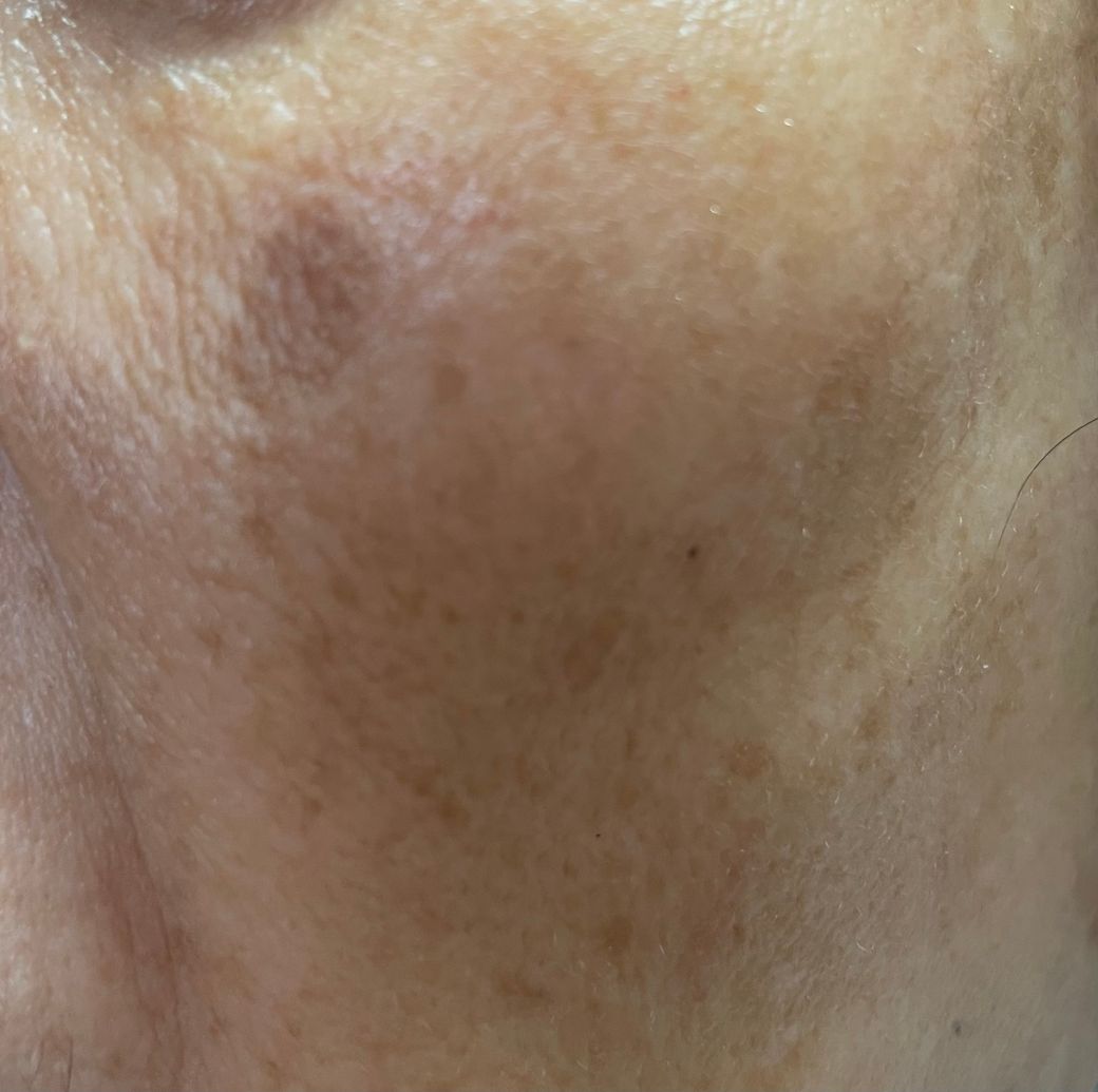 검버섯으로 추정되는 병변입니다. 보통 점 뺄 때 사용하는 어븀레이저나 CO2레이저를 동일하게 이용하게 치료하게 됩니다.