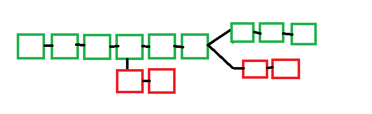 위의 그림에서 초록색 블록이 연속되어다가 끝에 빨간색 블록과 초록색 블록으로 나뉘어 집니다. 빨간색 블록은 2개까지 생기다가 초록색 블록이 하나 더 생기면서 더 많은 작업증명이 발생되고 초록색 블록의 진행방향이 정상적으로 판단되어 최근 2개가 생성된 빨간색 블록들은 사라지게 됩니다. 이것이 리오그 현상입니다. 빨간색 블록이 컨펌을 몇개 받았다고 하더라도 삭제가 되는 것이죠.리오그가 나는 경우는 종종 있는데 네트워크 연결속도로 인해 의도치 않은 고아블록이 발생될 경우 리오그 현상이 발생되기도 합니다. 그리고 공격자가 해쉬파워를 빌려서 준비해둔 블록을 집어넣어 리오그를 발생시키는 경우도 있습니다.