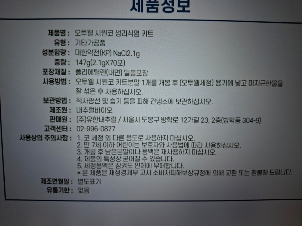 예전에 사두었던 오투웰 시원코 생리식염 키트가 있습니다