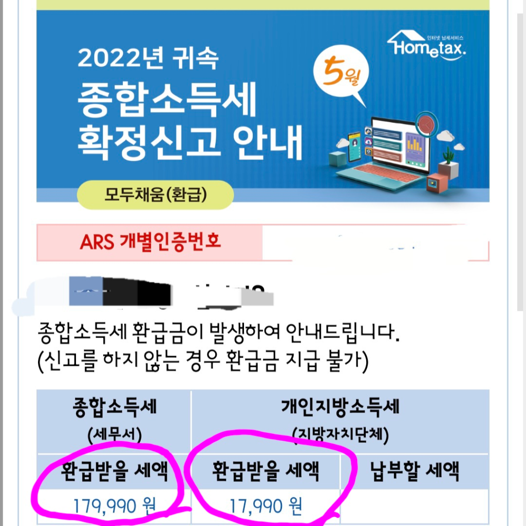 즉, 소득세 확정신고시에 국세청에서 소득세 환급 예상세액과 지방소득세 환급 예상세액을