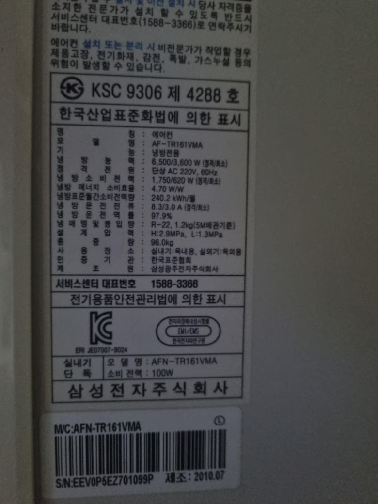 인버터형 이네요 껏다켰다 하지마시고 적정 온도 조절해가며 틀어두는게 전기료 절감이됩니다