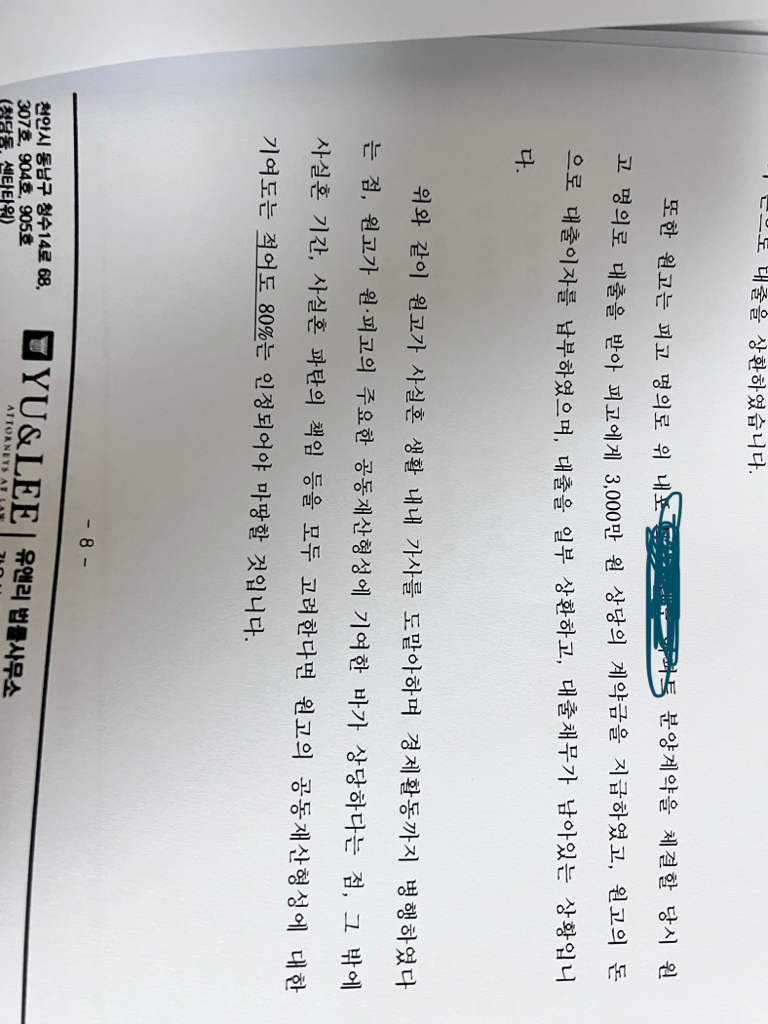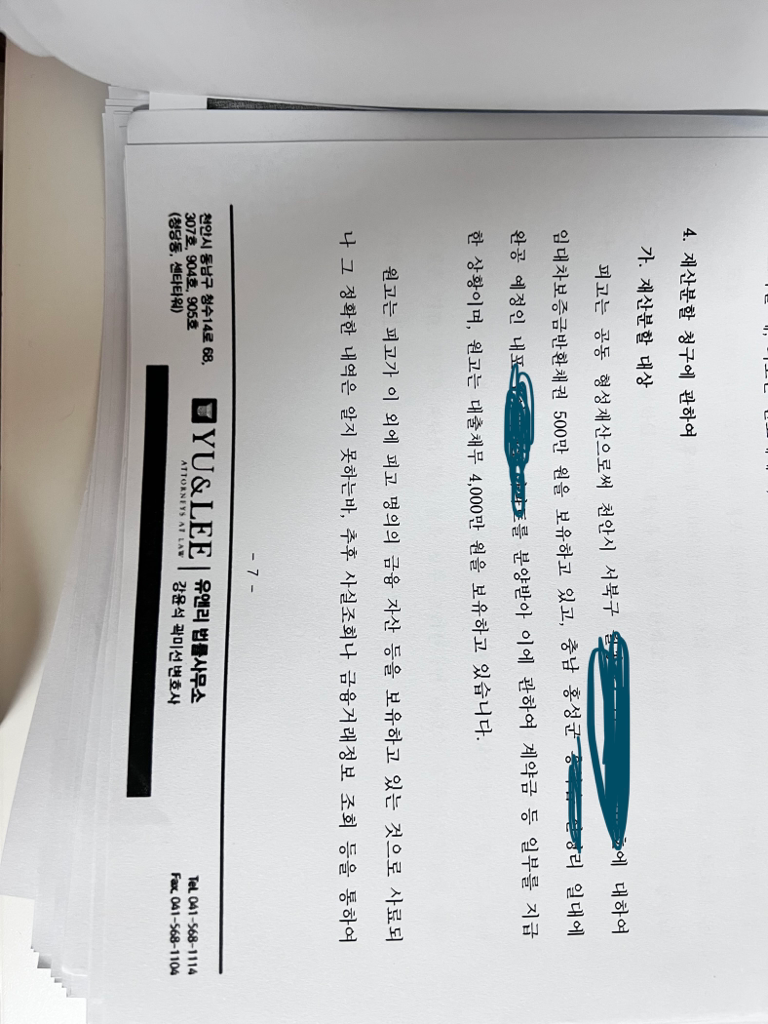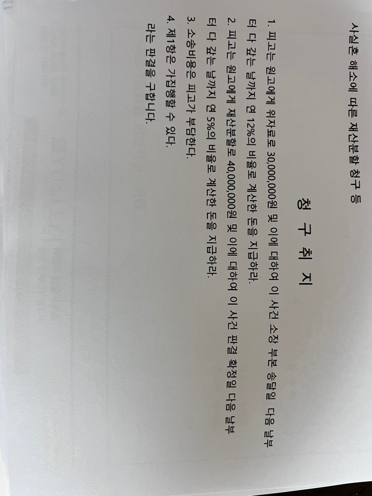 사실혼관계 파혼 후 재산분할고소장이 왔습니다