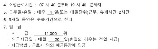 근로계약서에는 시급 11000원이라고 적혀있거든요
