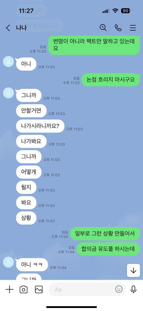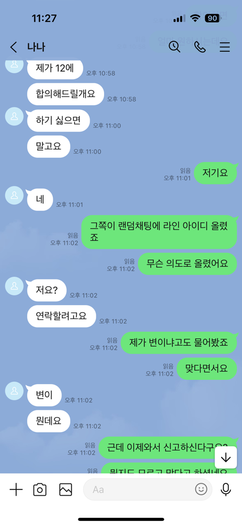 위 대화내용을 보면, 상대방은 처음에는 성적대화에 응하는 모습을 보이는바, 헌터일 가능성이 높아 보입니다. 상대방이 헌터라면 위 사실관계 그대로 고소를 하지 않을 것이기 때문에 고소를 당할 가능성이 있습니다.