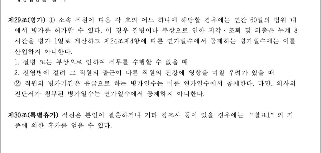 병가와 관련된 취업규정이에 대해 문의드립니다.