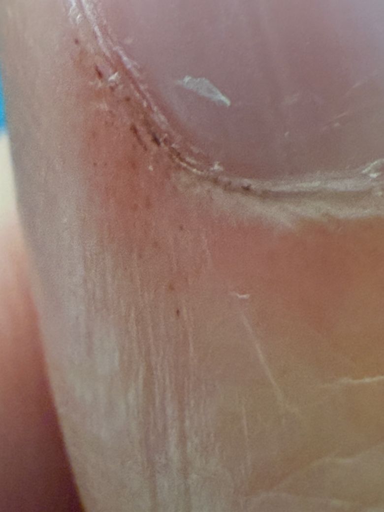 오늘 오른쪽 엄지 손가락 손톱 부분에 검은 뭔가 생긴것 같은데 이거 뭔가요 이거 사마귀인가요? 아니면 점상출혈인가요? 알려주세요?