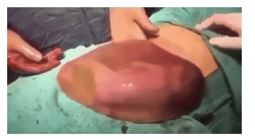 하지만 1/100,000의 확율로 양막이 찢어지지 않은체 양막과 함께 태어나는 경우가 있습니다. 그 경우 태아는 양막에 싸여 마치 알에서 태어난 듯한 모습입니다.