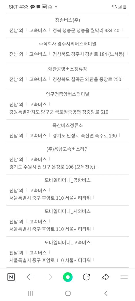 전남교육수당 티머니 시외버스 예매 되나요?