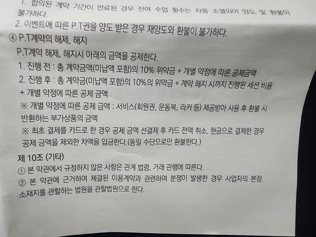 헬스장 환불 규정에 대한 질문입니다.