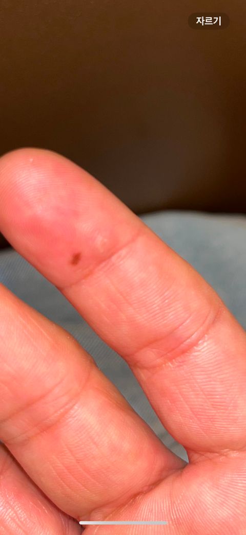 손가락 티눈 인가요? 저 부분만 다른 살 하고 다르게 딱딱 하고 꾸욱 누르면 통증이 있습니다 사마귀는 아닌고 같아서요 궁금합니다 ㅜㅜ