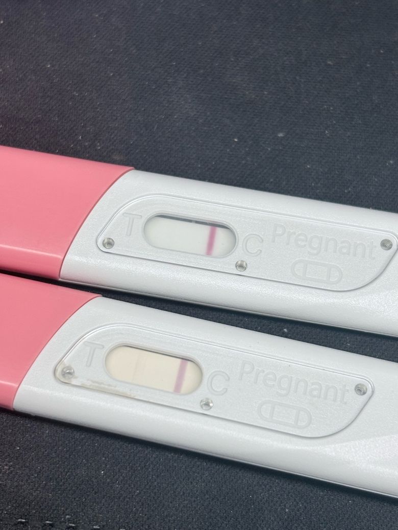 아래 임테기가 어제꺼이고 위에가 오늘꺼인데 어제 했을때 3~5분동안은 한 줄이었다가 갑자기 1시간 지난 시점부터 뭔가 살짝 보이기 시작하더니 하루 지난 시점에서 증발선인지 시약선인지 뭔지 저렇게 매우 희미하게 두 줄로 보이더라구요.. 3~5분 지난 시점만 인정하는 건 알겠는데 그런데도 불구하고 막상 현재 육안으로 두 줄이 보이니깐 불안해서 오늘 일어나서 첫소변으로 또 해봤는데 30분 지난 시점에서 너무 선명한 한 줄입니다. 비임신으로 봐도 되는거겠죠??