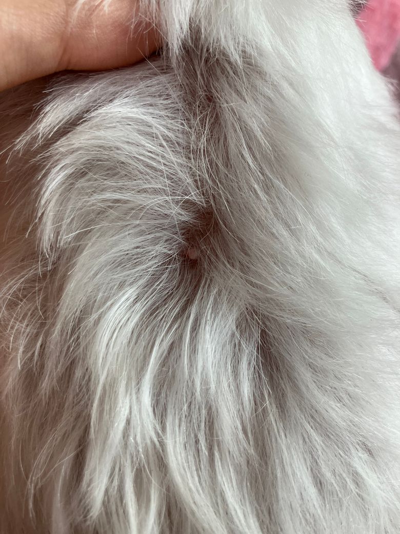 안녕하세요. 박창민 수의사입니다. 사진으로는 알 수가 없습니다. 또한, 털 때문에 잘 보이지도 않습니다. 심각한 건 아닌 거 같으나 동물 병원에서 검사를 받아보셔야 합니다. 감사합니다.