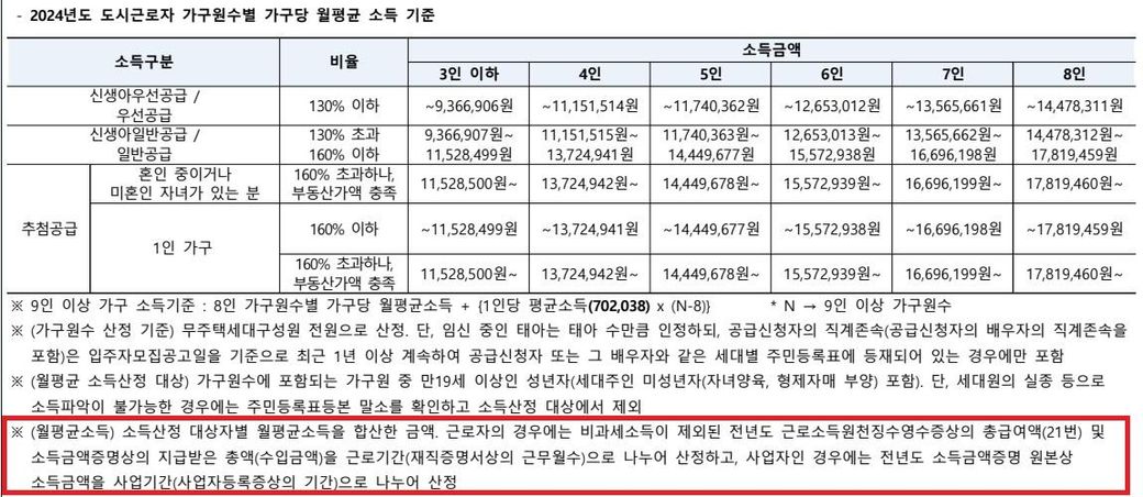 특별공급(생애최초 포함)의 소득 기준은 가구의 월평균 소득을 보는 것이기 때문입니다