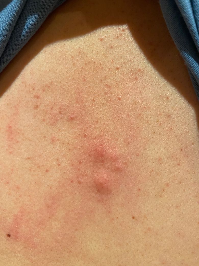 벌레에 물린 상처인지 모낭염과 관련된 질병인지 궁금합니다 사진부위는 등 위쪽 부분입니다