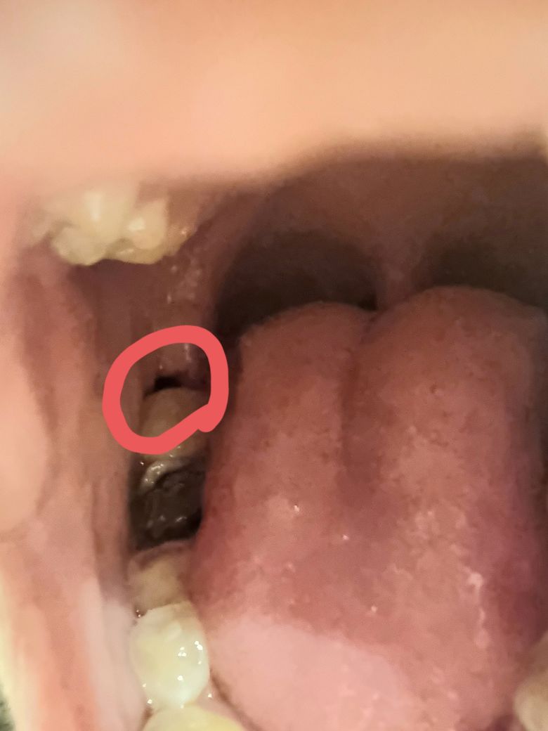 그런데 오늘부터 살짝 잇몸이 빨개진 거 같고 구멍을 확인해보니 구멍 부분이 거멓게 보입니다.