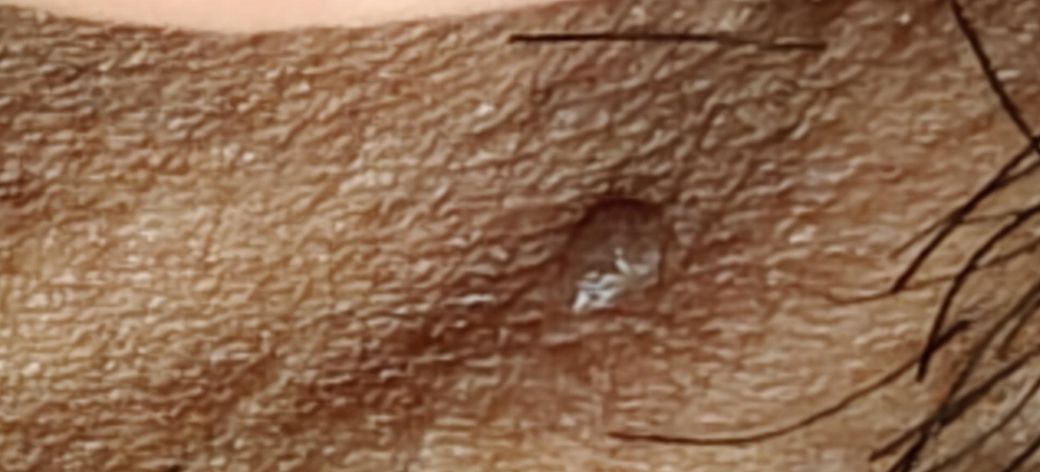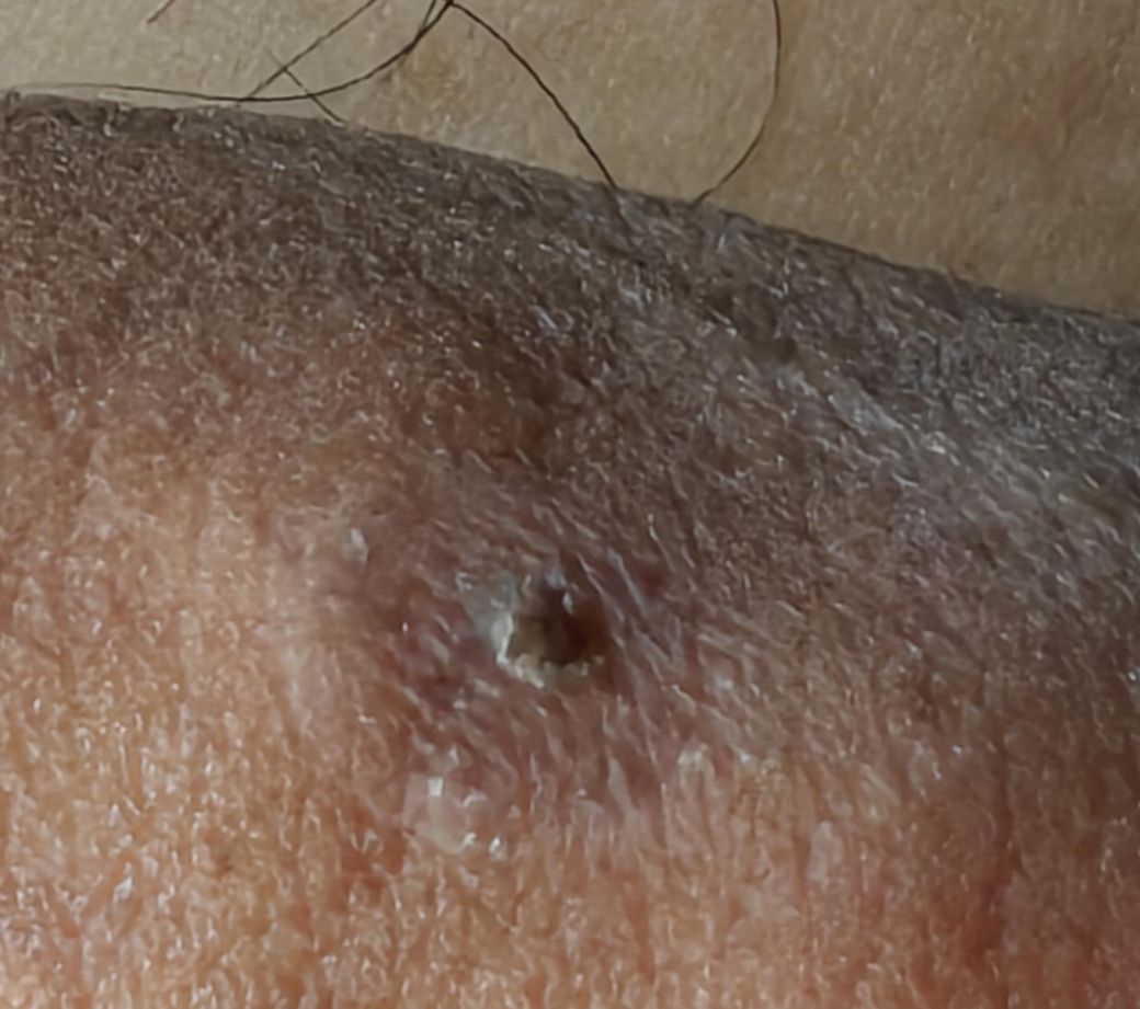 글쎄요. 사진 소견만으로 정확히 무엇이다 하고 감별하고 진단을 내리는 것은 가능하지 않겠습니다. 다만 생긴 모양으로 보아서는 무언가 상처가 생긴 이후에 제대로 아물지 않게 되면서 각화된 모양의 상처일 가능성이 있어 보입니다. 보다 자세하게 파악하고 구체적인 감별 및 진단을 받아보기 위해서는 실질적으로 피부과 진료 및 검진을 받아보는 것이 필요할 것으로 사료됩니다.