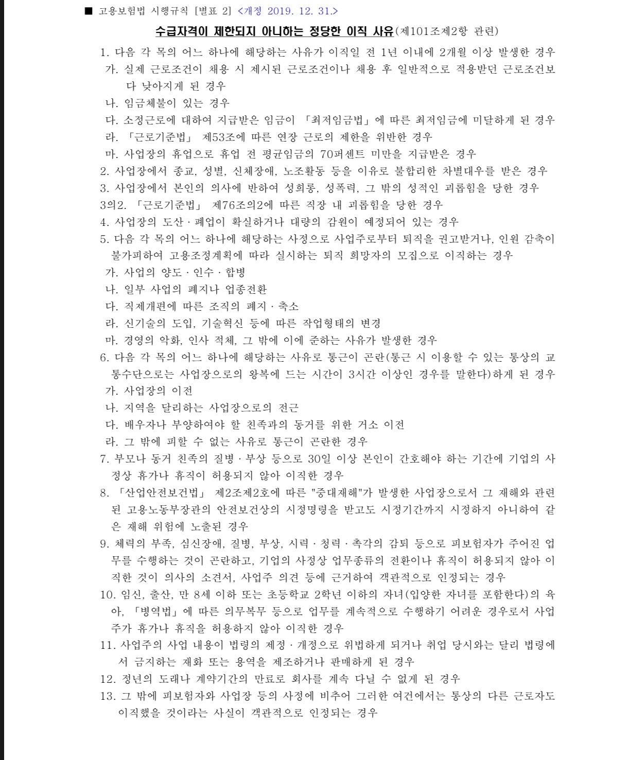 아래의 경우에는 자발적으로 이직하더라도, 정당한 이직으로 봅니다.