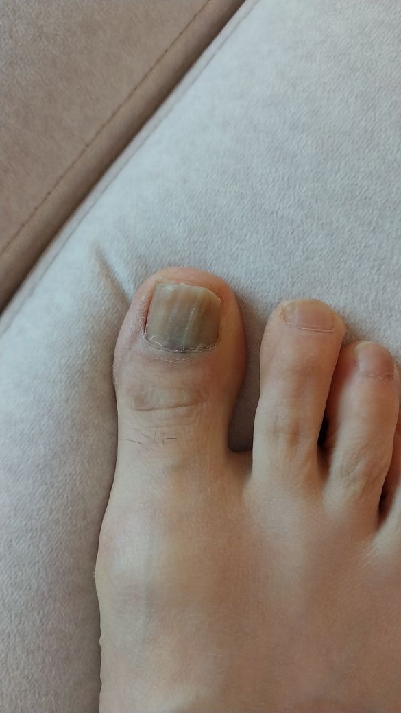 가장 먼저 무좀발톱을 의심해볼 수 있는 소견에 해당하겠습니다. 겉모습만 보고 정확한 감별 진단을 내리는 것은 어렵기 때문에 관련하여서는 혹시 모르므로 피부과적으로 진료 및 검진을 통한 구체적인 감별 진단을 받아보시길 권고드리며, 상태에 맞는 치료를 최대한 진행해보시길 바랍니다.