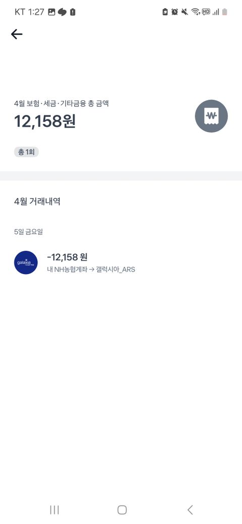 해당 내용만 봐서는 정액 결제를 해두셨을 가능성이 높은데, 갤럭시아머니트리 고객센터로 문의를 해보셔야 정확한 내용을 알 수 있을 것 같아요