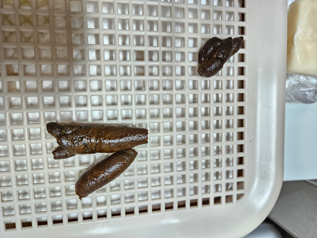 질문4.변을 갈라서 속에 과산화를뿌리면 거품반응이 일절없는데 이건 어떻게 해석해야되나요?