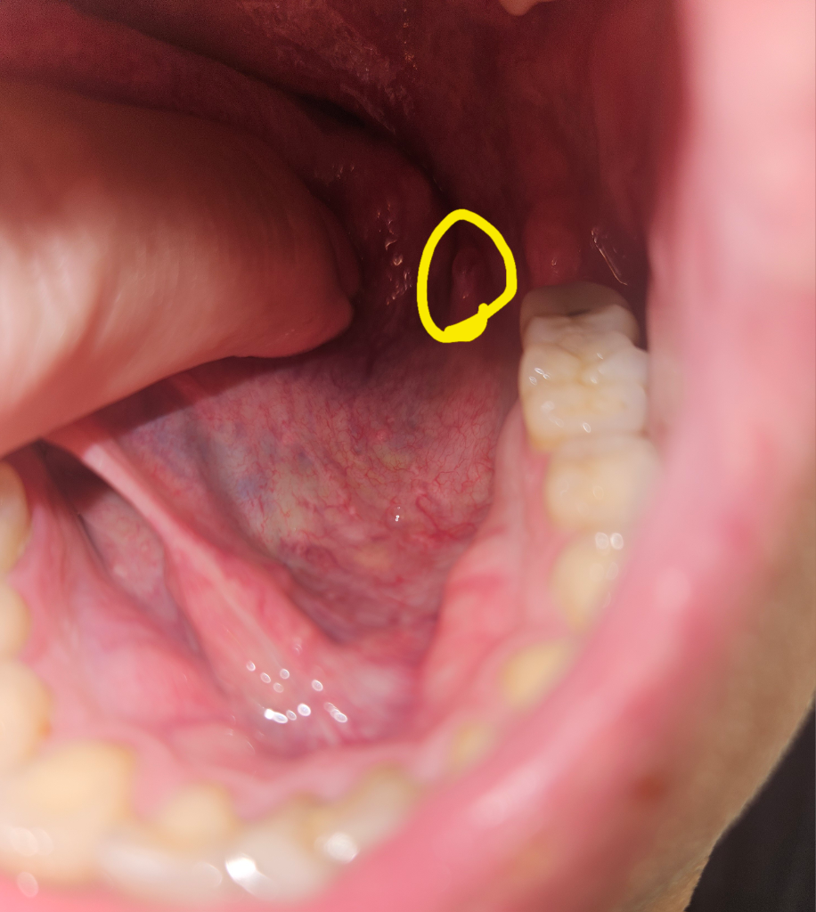 입 속의 덩이가 관찰되어 걱정스러우시겠습니다. 이비인후과가 가장 적합한 진료과이니 가까운 곳을 먼저 방문해보시는 것을 권해드립니다.