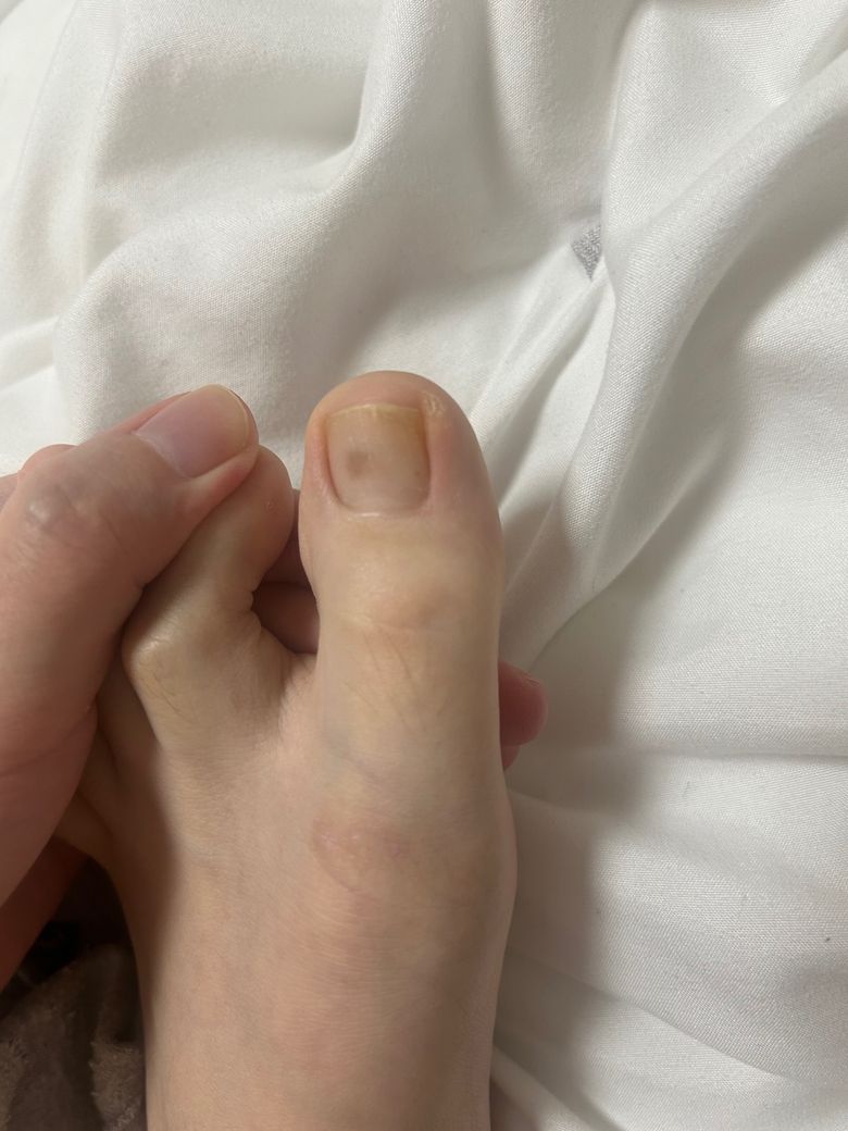 왼발 엄지발톱에 연한갈색이 생겼습니다. 흑색종일까요?