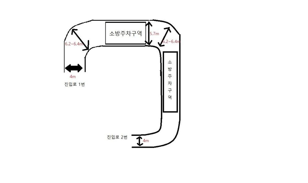 1. 진입로 폭이 좁기 때문에, 코너부쪽에 임시주차를 했을 경우에 소방차 회전반경에 걸려서