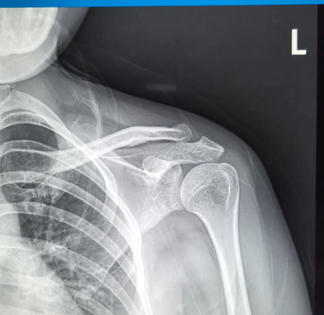 어께뼈 사진인데 왼쪽이 골절됬다가 다시붙었다는데 골절이 된건가요? 붙은건가요?