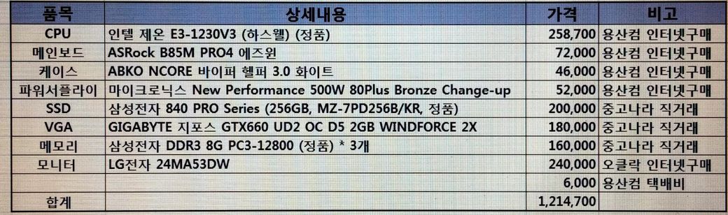 제pc는 2013년도에 조립한 것입니다. 오래된구식인데,