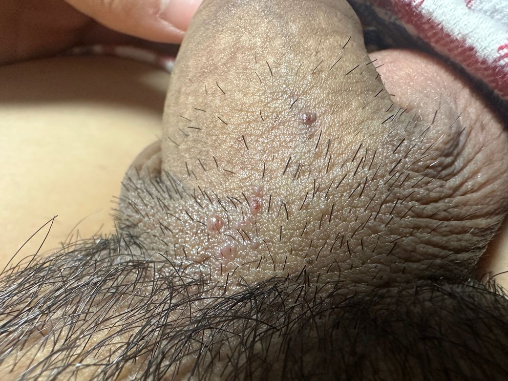 다만 병변이 점점 늘어나거나, 표면이 거칠게 커지거나, 사마귀처럼 뿌리째 붙어 있는 형태로 변하면 곤지름 등 다른 질환 감별이 필요합니다. 물집이 생기거나 따끔거리는 통증이 동반되면 헤르페스 가능성도 배제할 수 없습니다. 현재 단계에서는 면도·제모를 잠시 중단하고, 압출이나 자극은 피하는 것이 좋습니다.