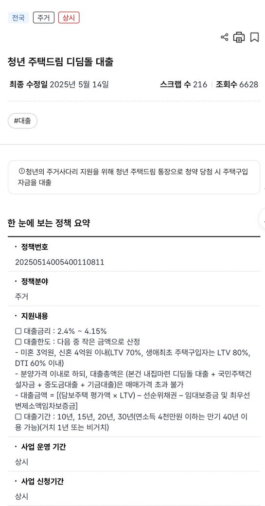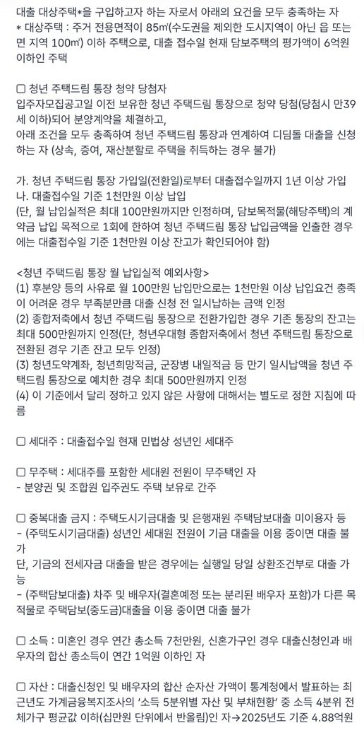 청년주택드림 디딤돌대출 정책 설명의 ‘다음 요건을 모두 충족하는 자’ 이후 요건중