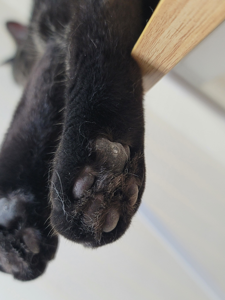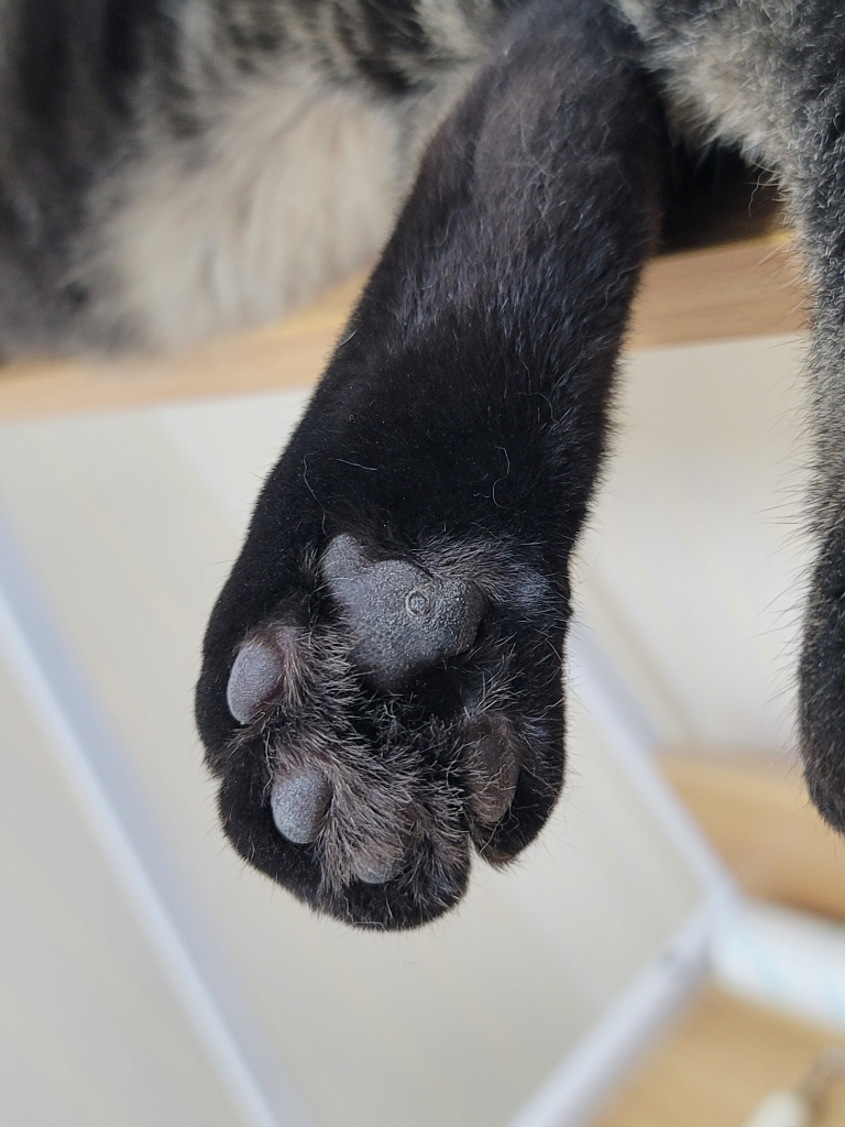 자료의 하단 설명에서 언급하고 있는 FeLV 감염이 된 고양이에거 관찰될 수 있는 발바닥 패드의 뿔과 매우 유사한 양상으로 생각됩니다.