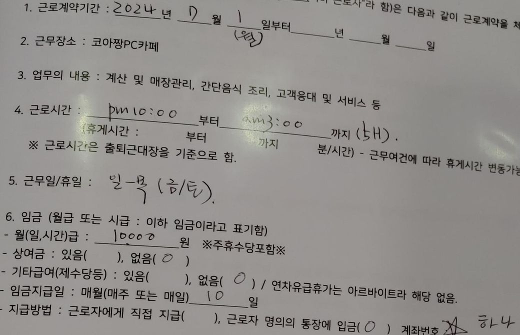 밑에는 계약서 인데 저렇게 이미 계약을 한 경우 주휴수당 을 추가로 받을 수 있는 건지 궁금합니다