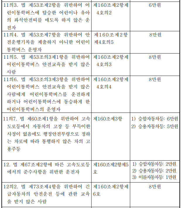 4의2. 제53조제2항을 위반하여 어린이통학버스에 탑승한 어린이나 영유아의 좌석안전띠를 매도록 하지 아니한 운전자