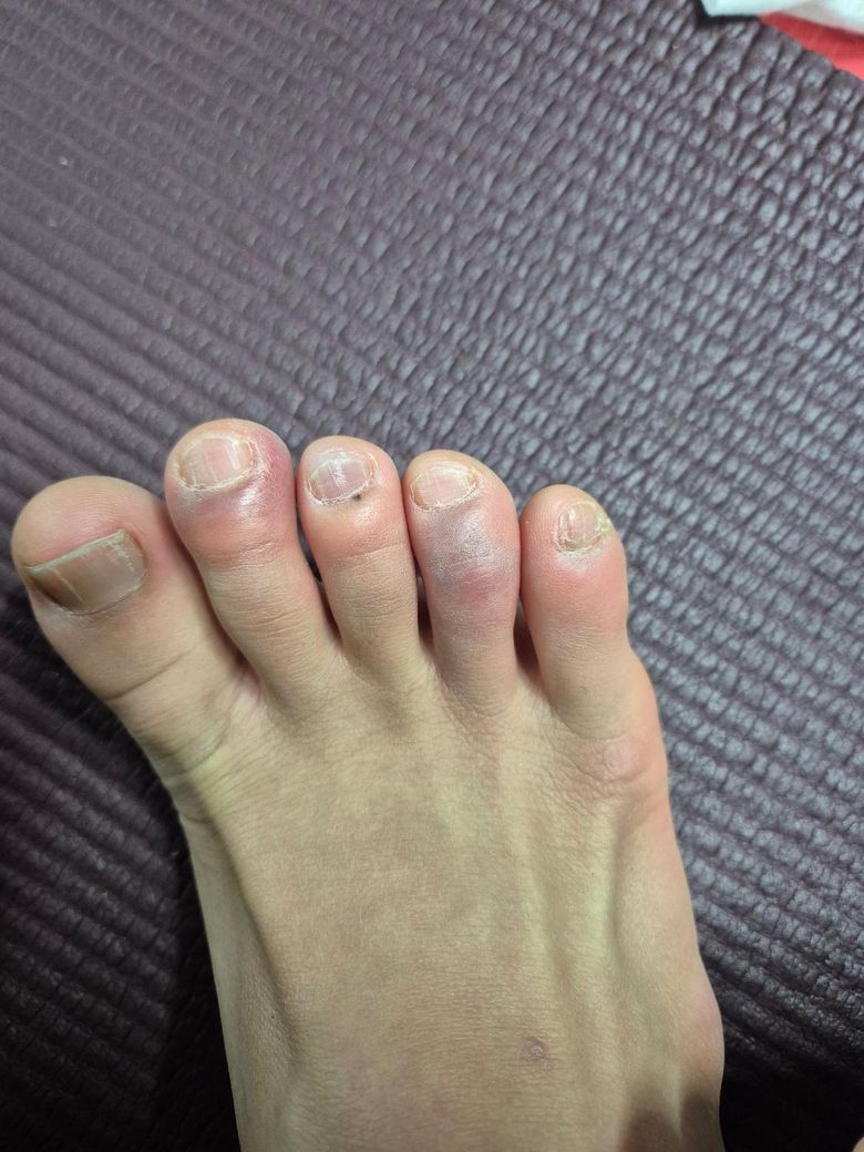 발가락에 통증과 부종이 있으며, 멍이 들었는지 모르겠습니다. 며칠 전부터 증상이 지속되고 있습니다....