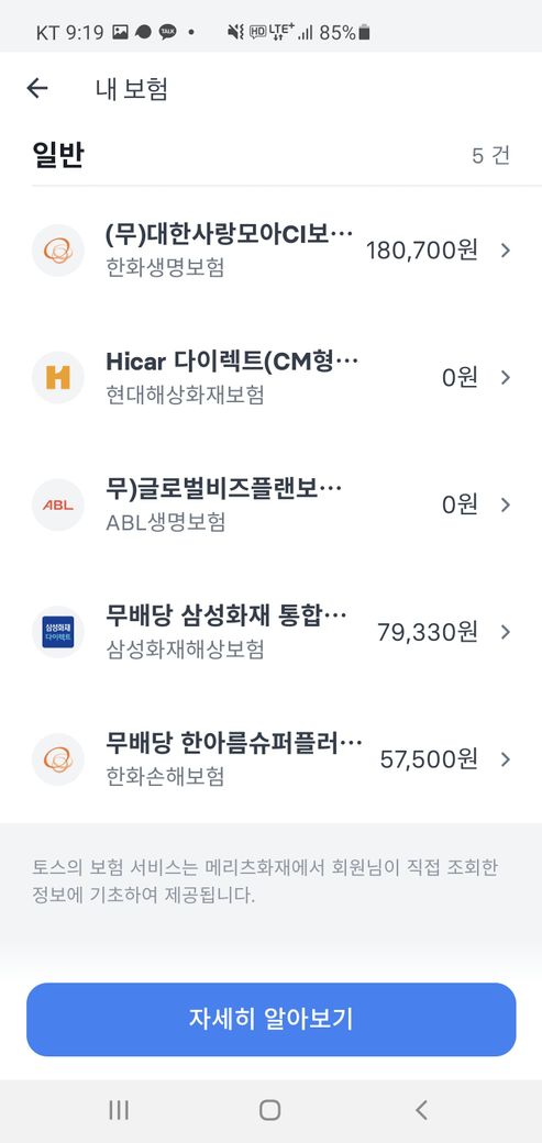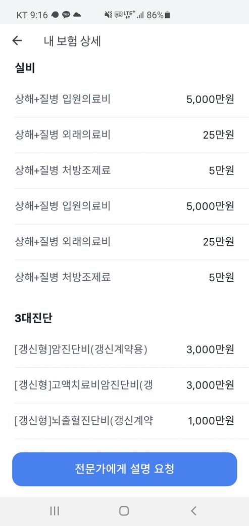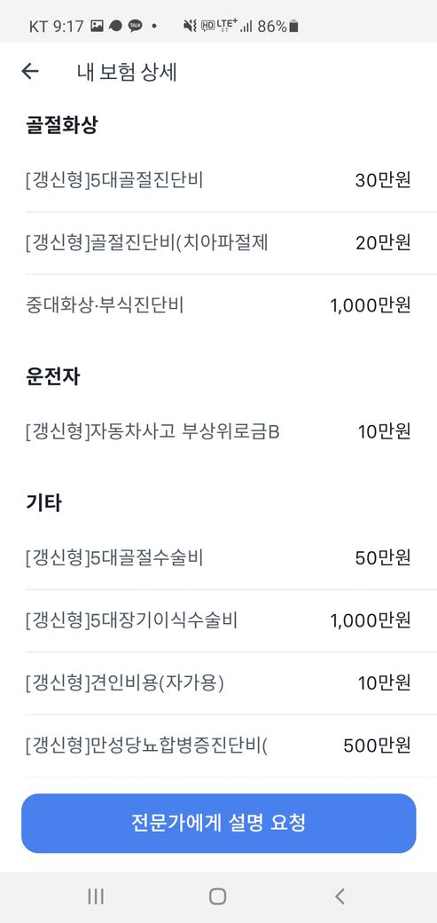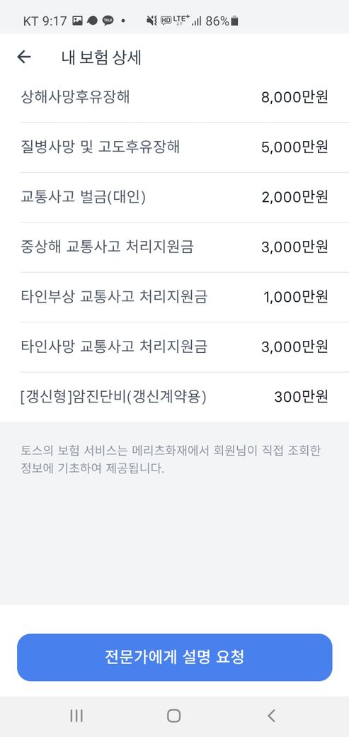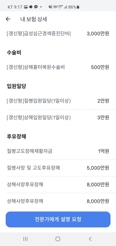마지막 사진은 전체 보험 내역입니다