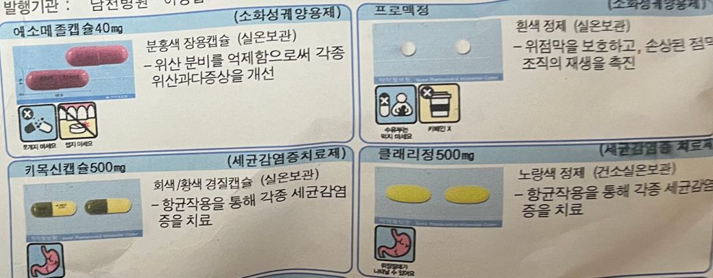 헬리코박터 제균 치료약들의 성분이