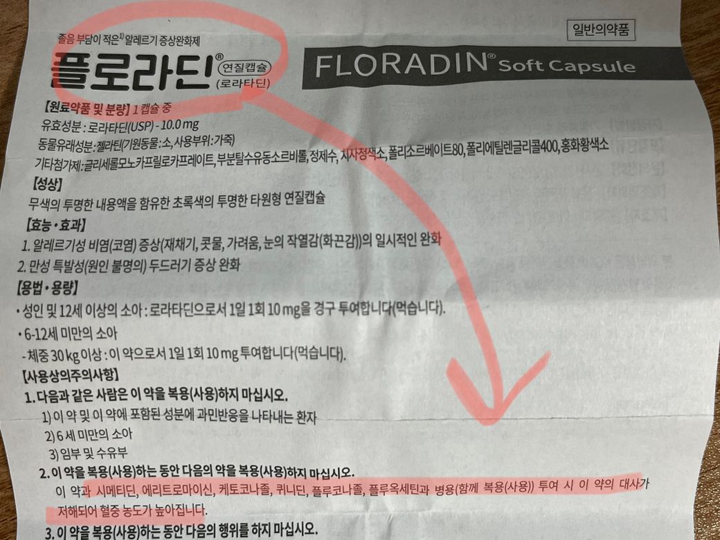 플로라딘 주의사항에 적혀있는 약성분들은 아니에요.